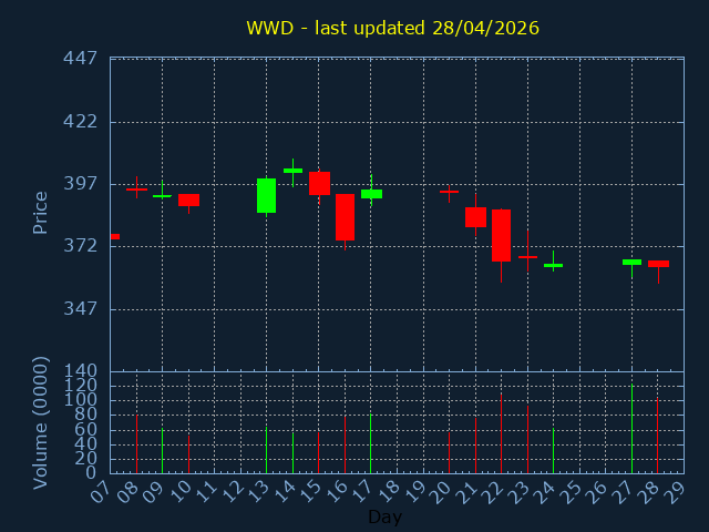 Click here for WWD Candlestick History