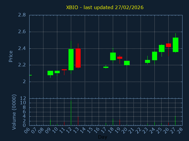 Click here for XBIO Candlestick History