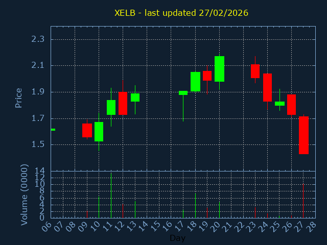 Click here for XELB Candlestick History
