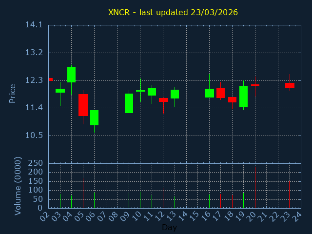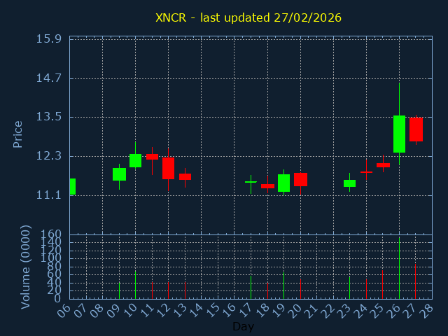 Click here for XNCR Candlestick History