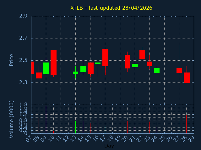 Click here for XTLB Candlestick History