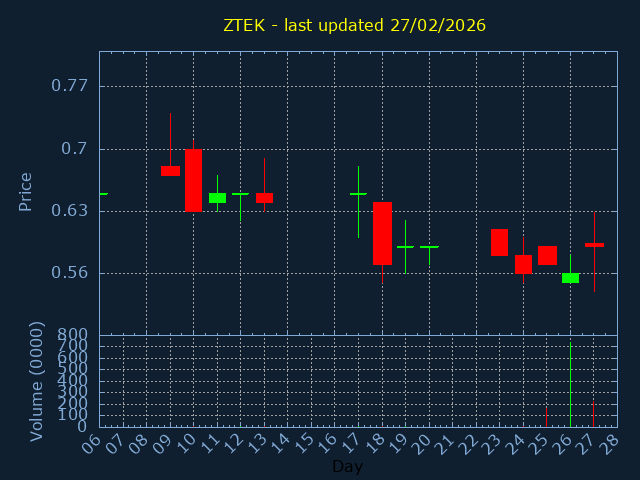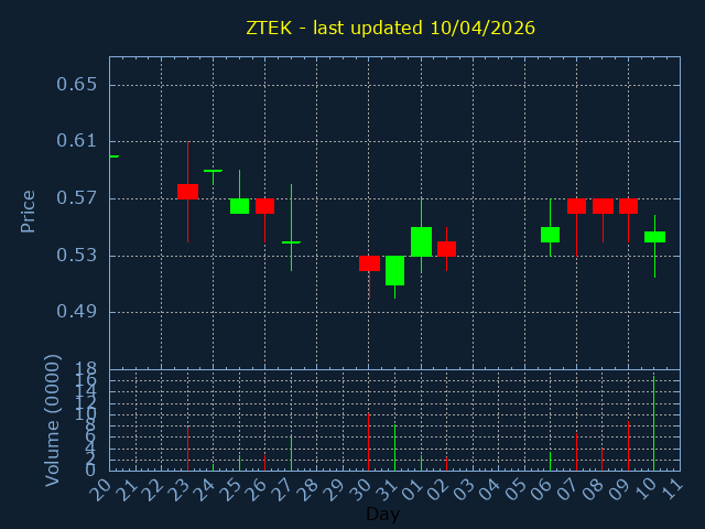 Click here for ZTEK Candlestick History
