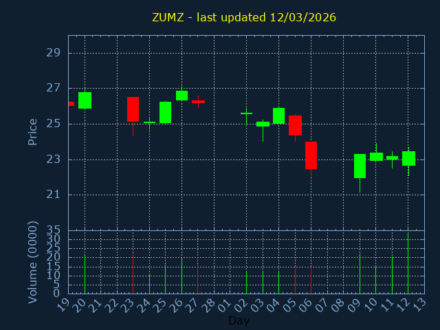 Click here for ZUMZ Candlestick History