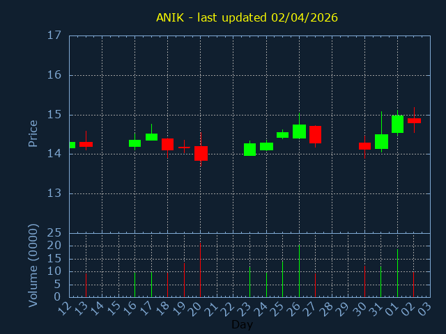 Click here for ANIK Candlestick History