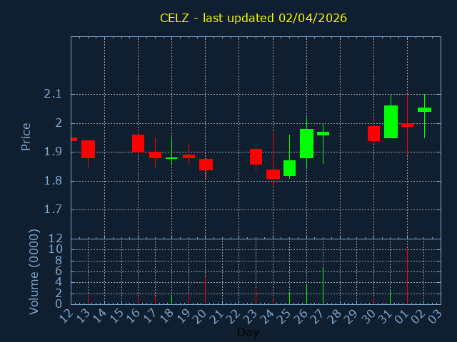 Click here for CELZ Candlestick History