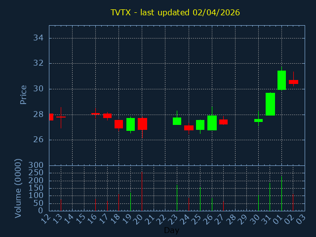 Click here for TVTX Candlestick History