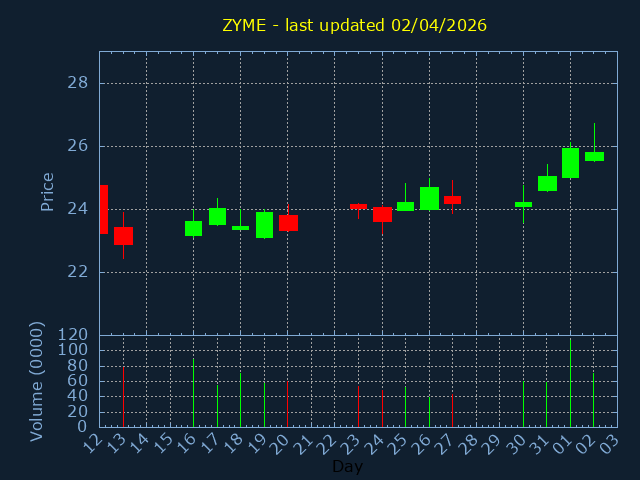 Click here for ZYME Candlestick History