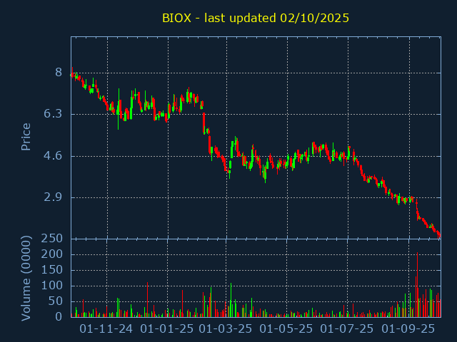 Click here for BIOX Candlestick History