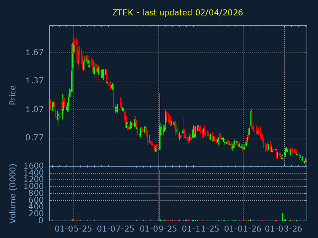 Click here for ZTEK Candlestick History