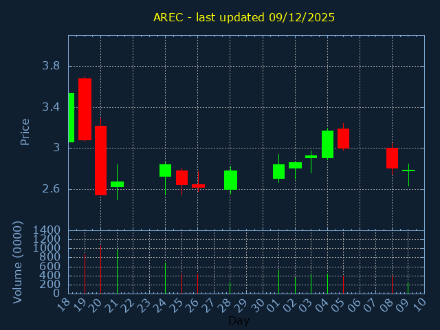 Click here for AREC Candlestick History