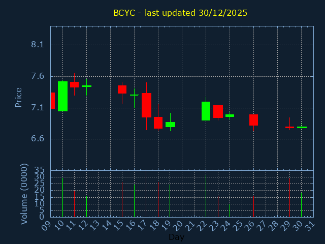 Click here for BCYC Candlestick History