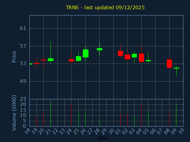 Click here for TRNS Candlestick History