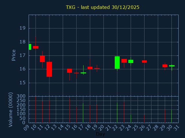 Click here for TXG Candlestick History