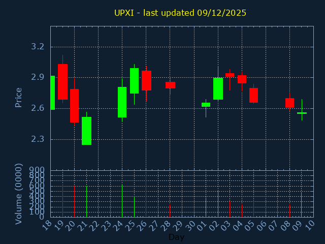 Click here for UPXI Candlestick History