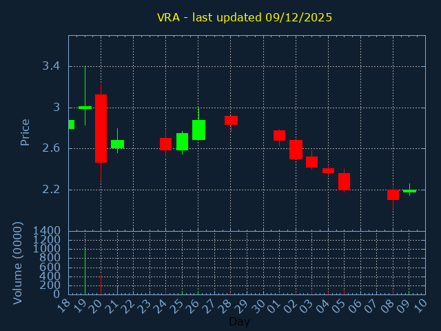 Click here for VRA Candlestick History