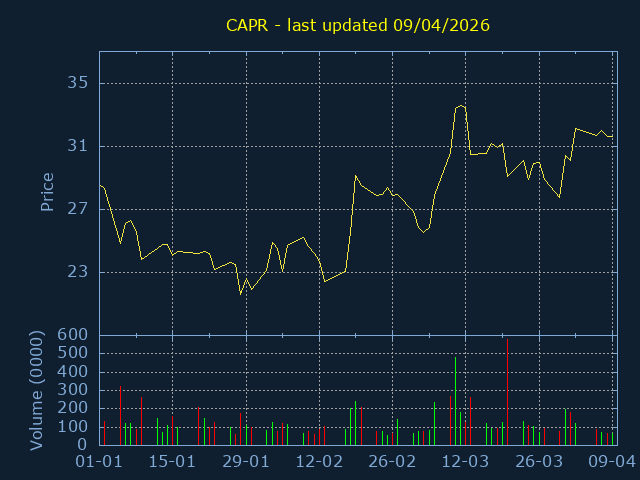 Click here for CAPR Candlestick History