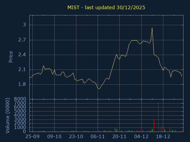 Current Price:2.87, -0.130, -4.33%