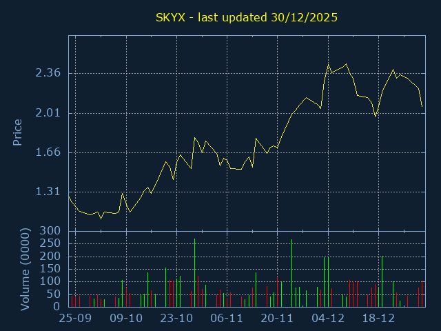 Click here for SKYX Candlestick History