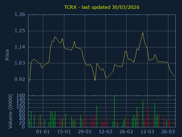Click here for TCRX Candlestick History
