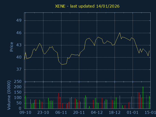 Click here for XENE Candlestick History