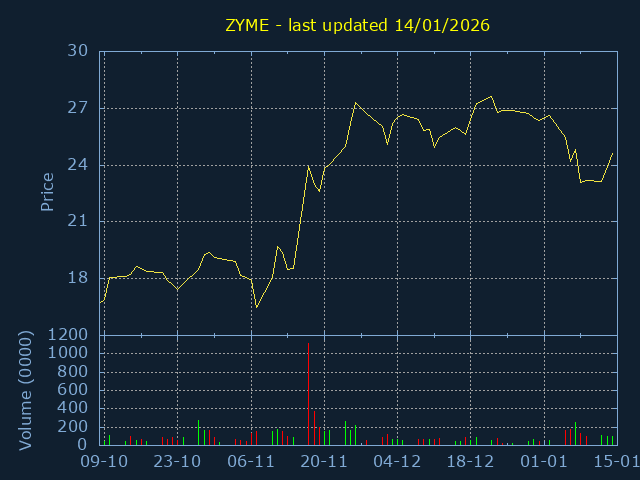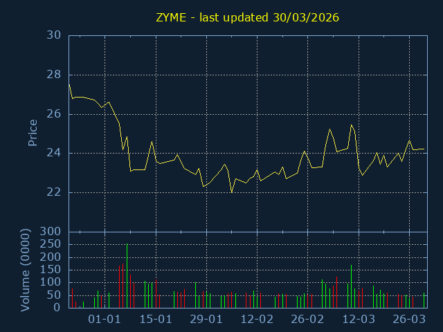 Click here for ZYME Candlestick History